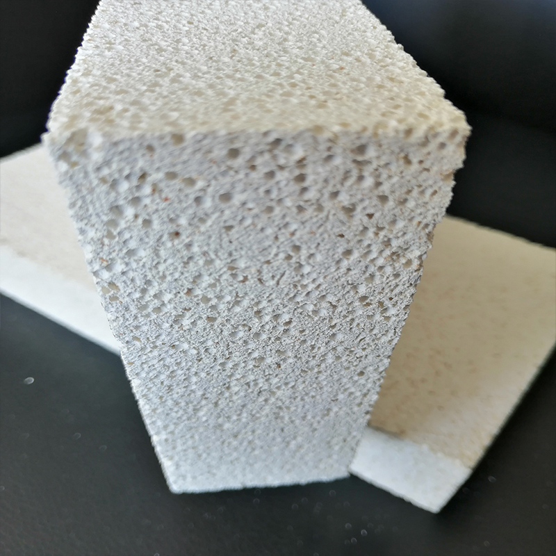 莫來石保溫磚以莫來石(3Al2O3·2SiO2)為主晶相的高鋁質耐火材料。一般氧化鋁含量在50%~60%之間。礦物組成除莫來石外,其中含氧化鋁較低者還含有少量玻璃相和方石英;含氧化鋁較高者還含有少量剛玉。耐火度較高,可達1790℃以上。荷重軟化開始溫度1600~1700℃。常溫耐壓強度70~260MPa??篃嵴鹦粤己?。