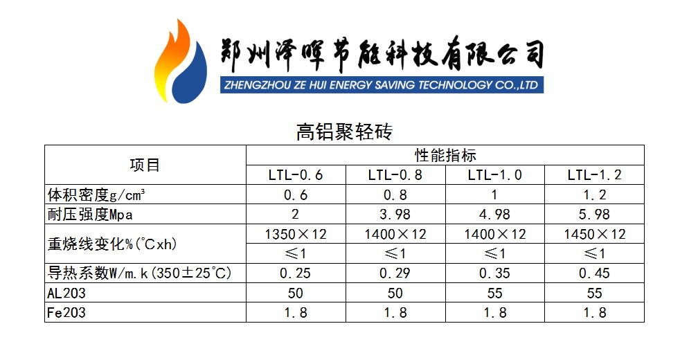 輕質高鋁聚輕磚理化指標