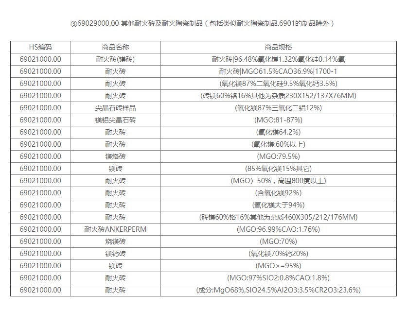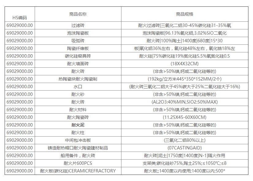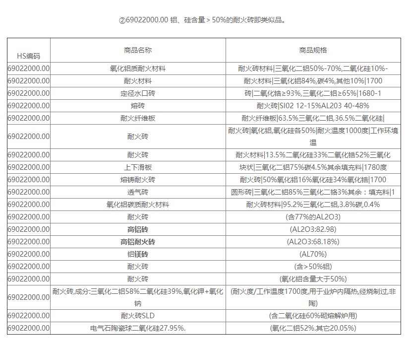莫來石磚、高鋁聚輕、輕質粘土保溫磚等其他耐火材料
