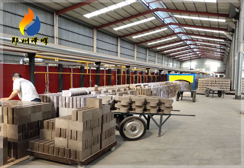 ?    耐火磚磚坯從壓磚機取出后可直接裝到隧道窯窯車上,直接送往窯前干燥器(它與隧道窯連為一起),干燥后不經轉裝而直接推入窯內燒成。這種干燥方式可以簡化工序、減少搬運時的破損、減少揚塵、節約人力,充分利用隧道窯內廢氣的余熱,具有很大的優越性。但是,這種系統要求磚坯具有較高的強度,適用于半干法成型的粘土磚、高鋁磚及鎂質制品。