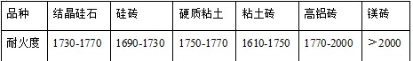 表 1-3        各材料的耐火度指標(℃)